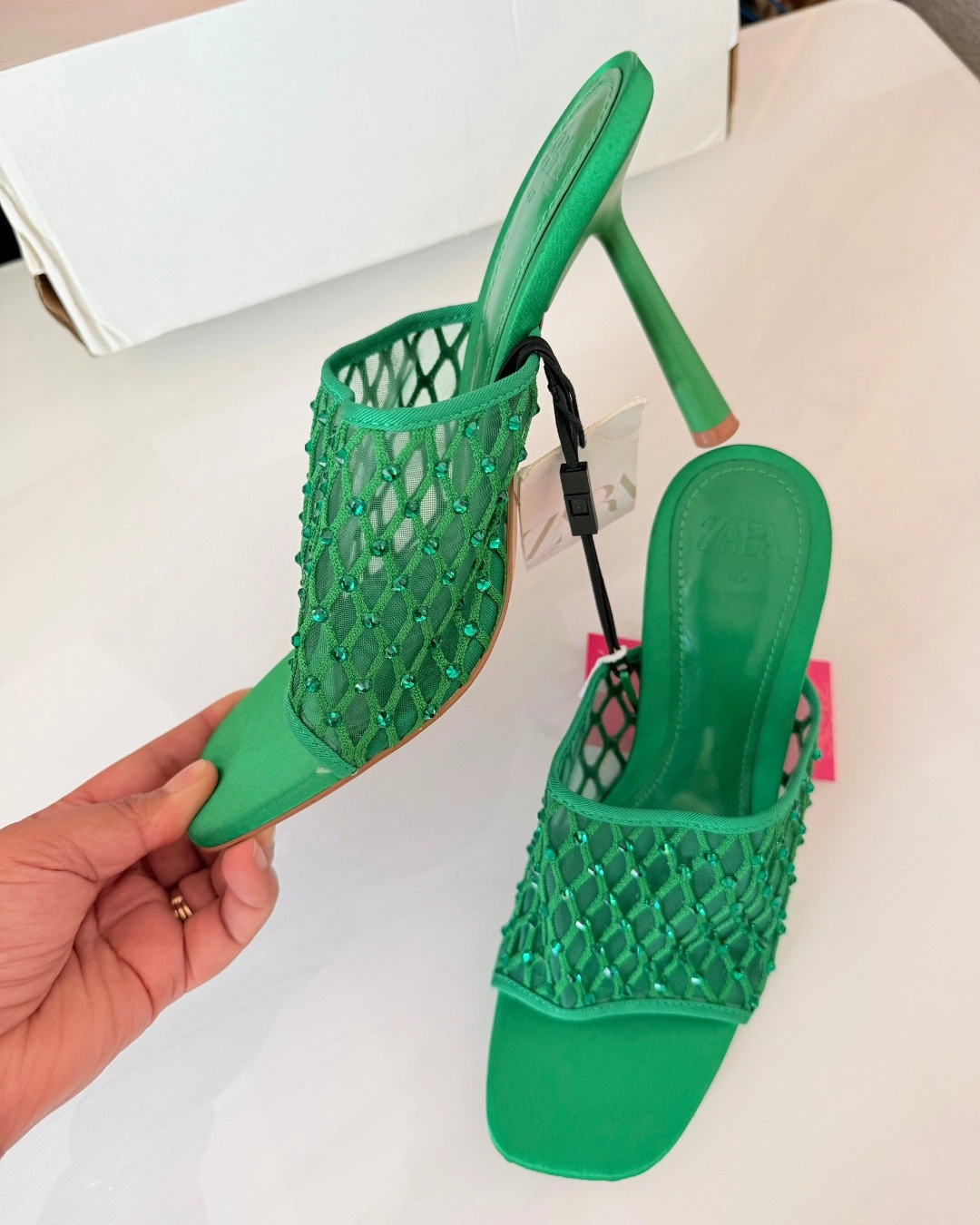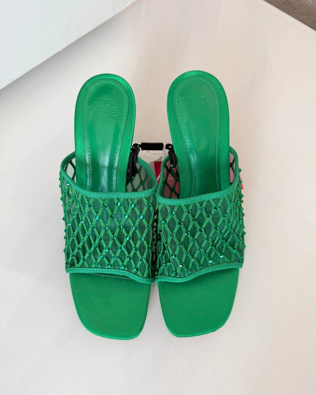 Green Zara shimmery mesh heels