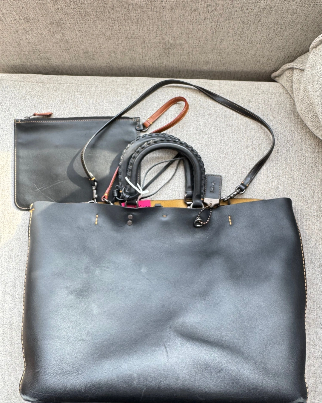 Coach tote bag with whipstitch handle