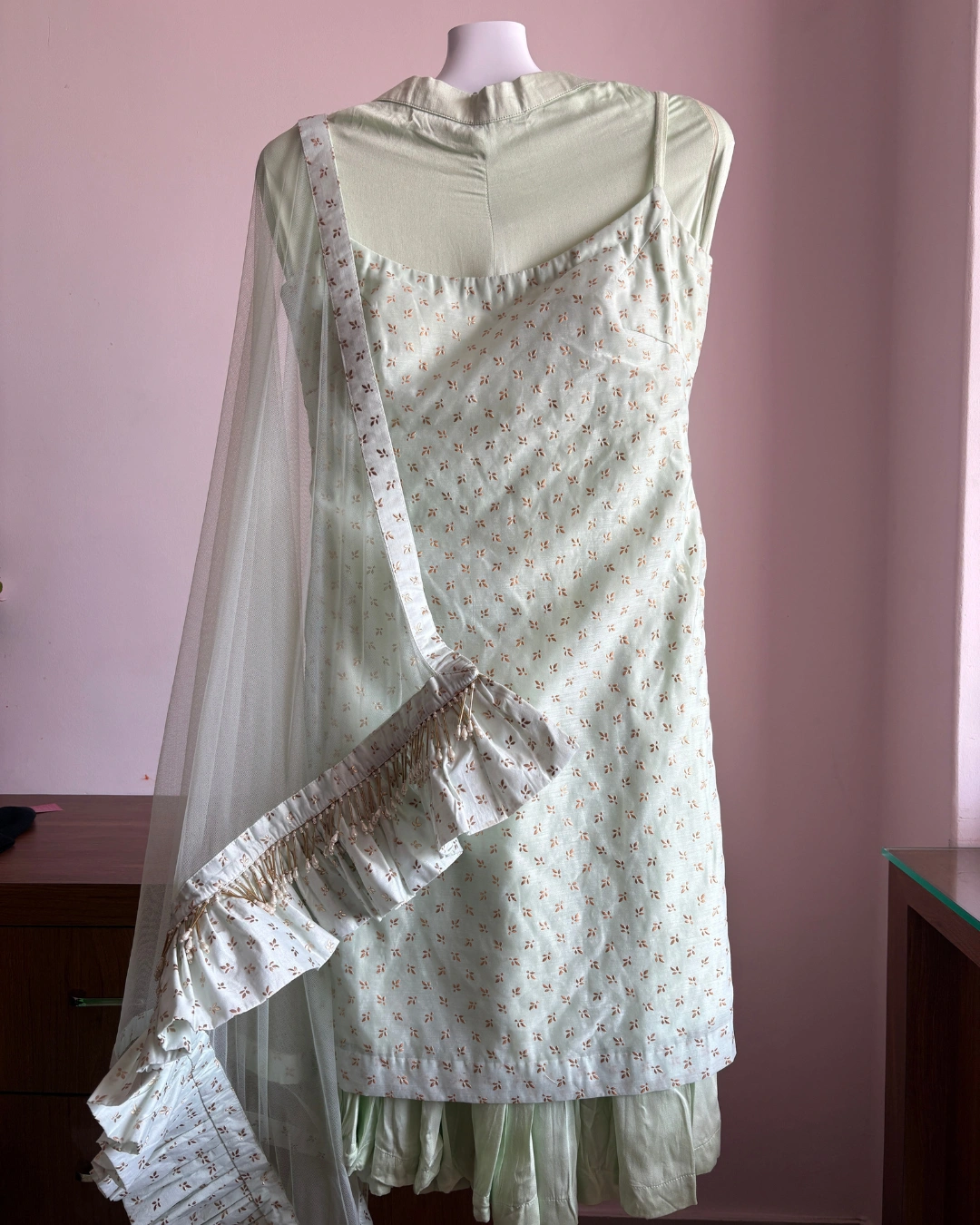 Oodni boutique mint green sleeveless sharara set